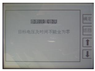 4.目標(biāo)電壓及耐壓時間至少有一個階段不全為零,否則在開始試驗時出現(xiàn)如下提示界面: