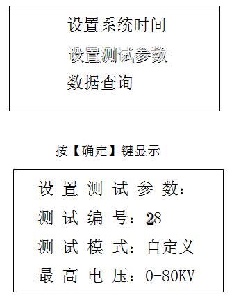 2.2.2、按【↑】鍵和【↓】鍵移動陰影光標到“設置測試參數(shù)”,再按【確認】鍵進入設置測試參數(shù)界面。
