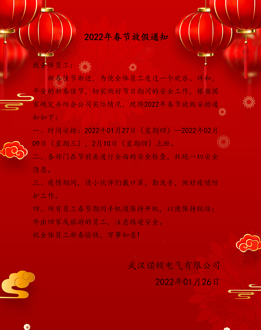 上一個(gè):武漢諾頓電氣2022年清明放假通知