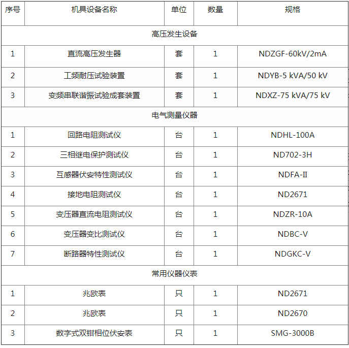 2017年12月1日,國(guó)家能源局對(duì)電力承試類資質(zhì)設(shè)備進(jìn)行了相應(yīng)的調(diào)整,各個(gè)省的承試類資質(zhì)設(shè)備都相同,同時(shí)減去了一些電力企業(yè)在實(shí)際工作中并不常用到的設(shè)備,武漢諾頓電氣在本文就簡(jiǎn)單介紹新版的承裝(修、試)承試類五級(jí)電力設(shè)施許可證所需施工機(jī)具設(shè)備選型指南。